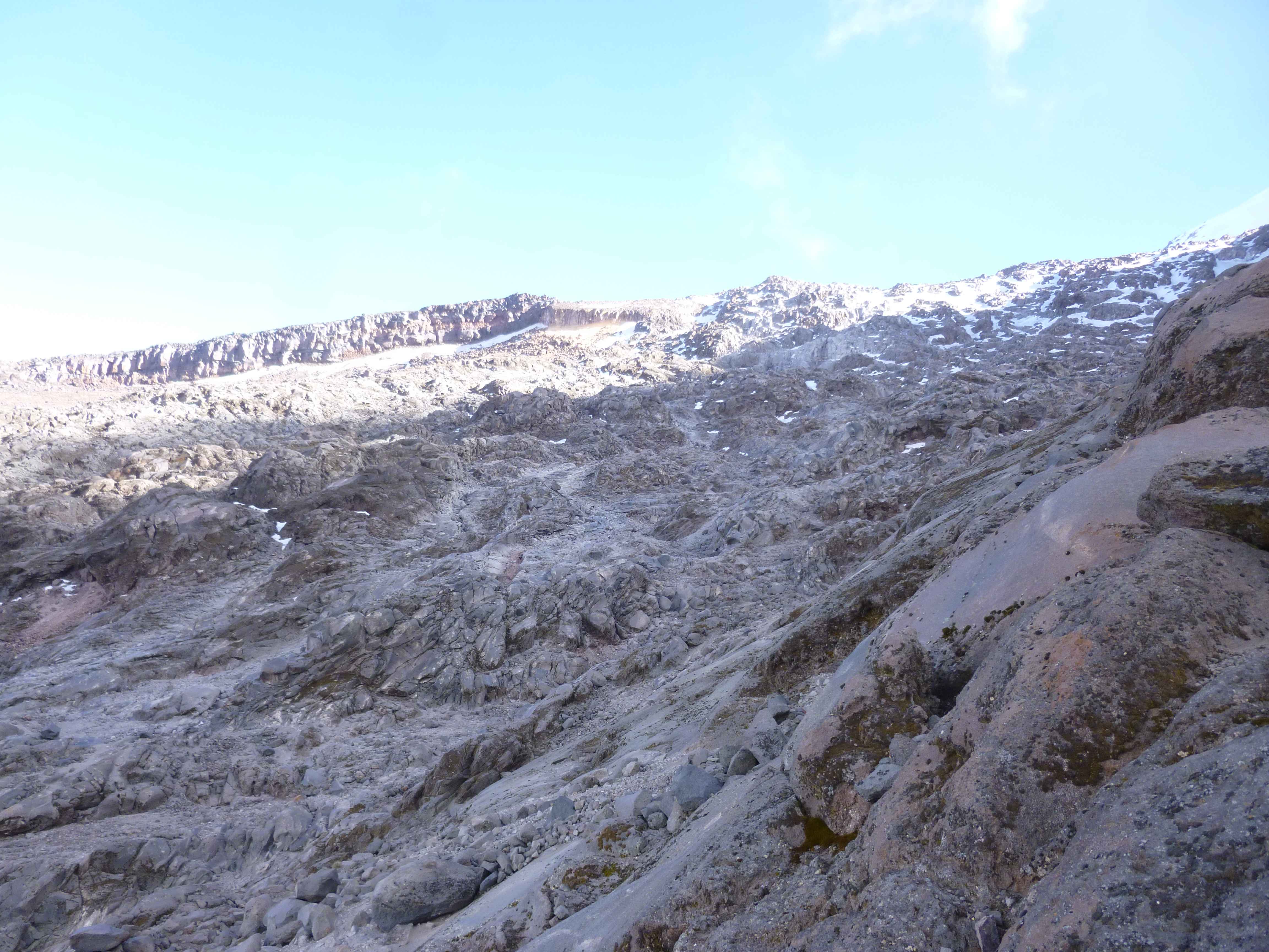 Higher still the scree eased into smooth rock, rounded like giant marbles. The glacier once covered this section of the mountain.