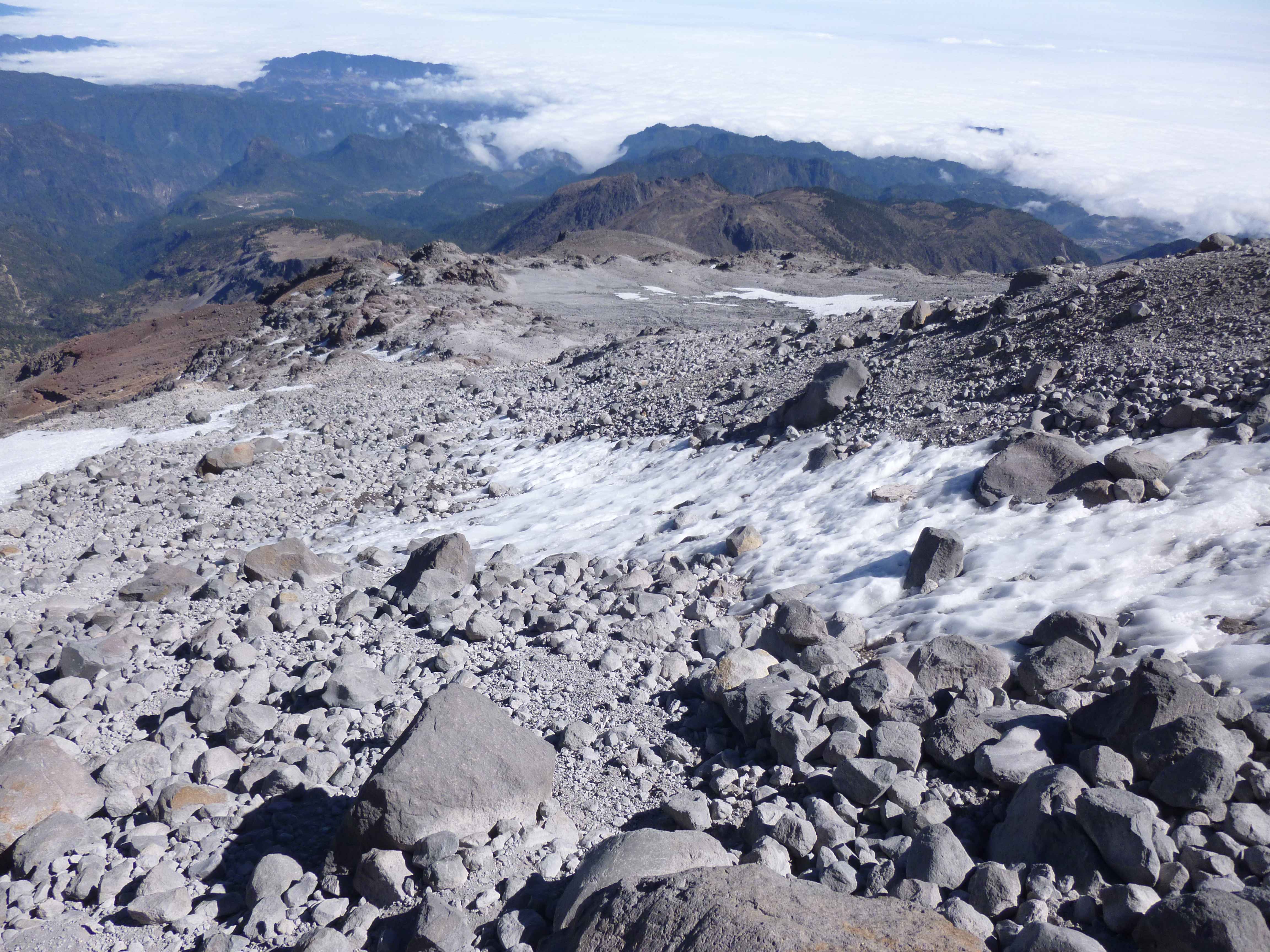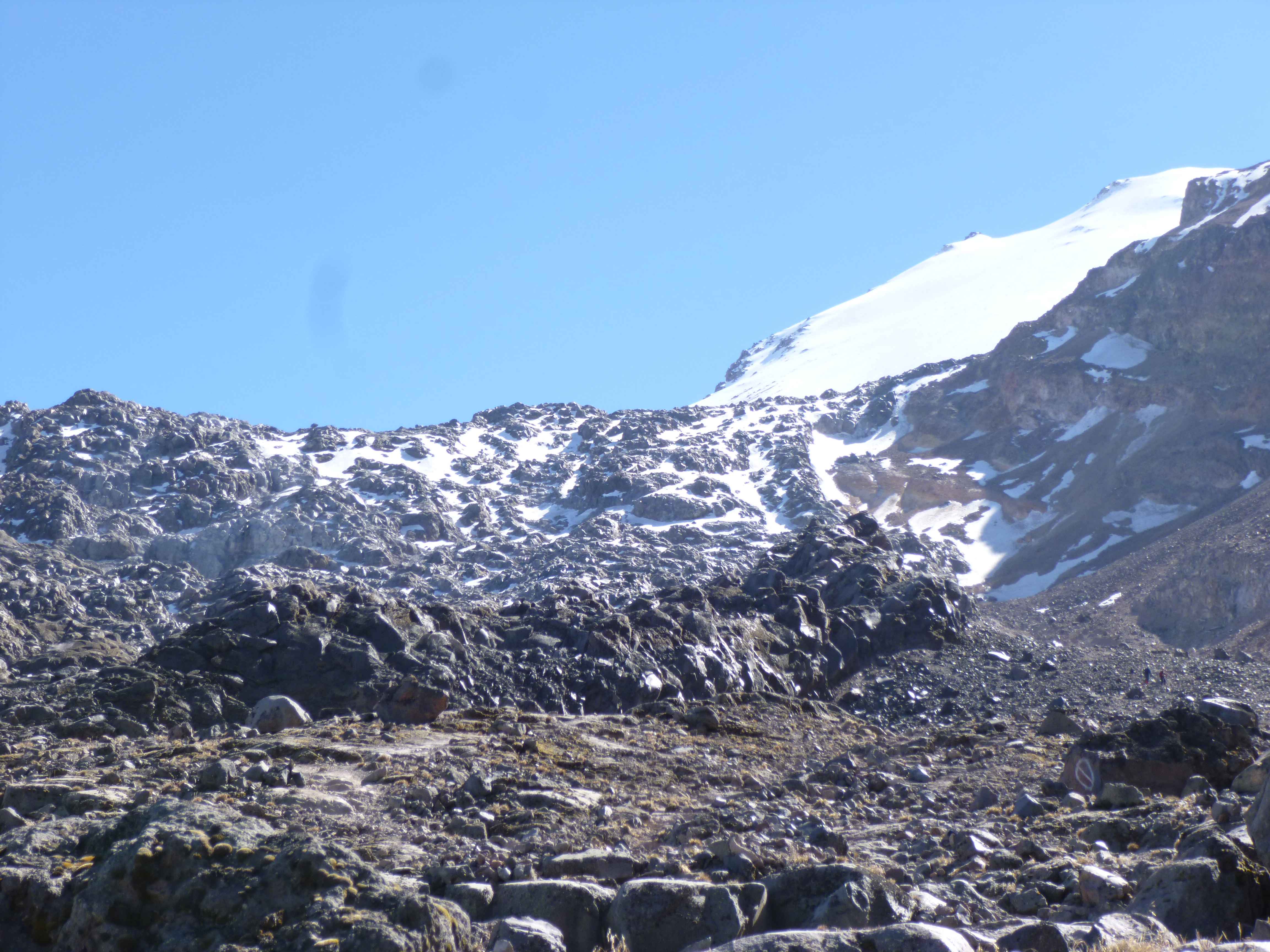 Orizaba’s glaciers have continued retreating and are becoming less stable. I encountered no objective risk, crevasses, or avalanche hazard in 2012. However, a firsthand report and photographs of a 4m wide, 4-8m deep crevasse at 5500m elevation, near the top of the Jamapa Glacier normal route, were given to me in mid February, 2016. 5500m corresponds roughly with the area near the top of the Jamapa where rocks are visible protruding from the glacier. The crevasse was hidden, covered with a thin and unstable snowbridge, which collapsed underneath a climber. If planning a climb of Orizaba, do not assume that the glacier will be stable or devoid of crevasse hazards. This crevasse presents a significant hazard, and if it opens up further will make the climb far more difficult technically.