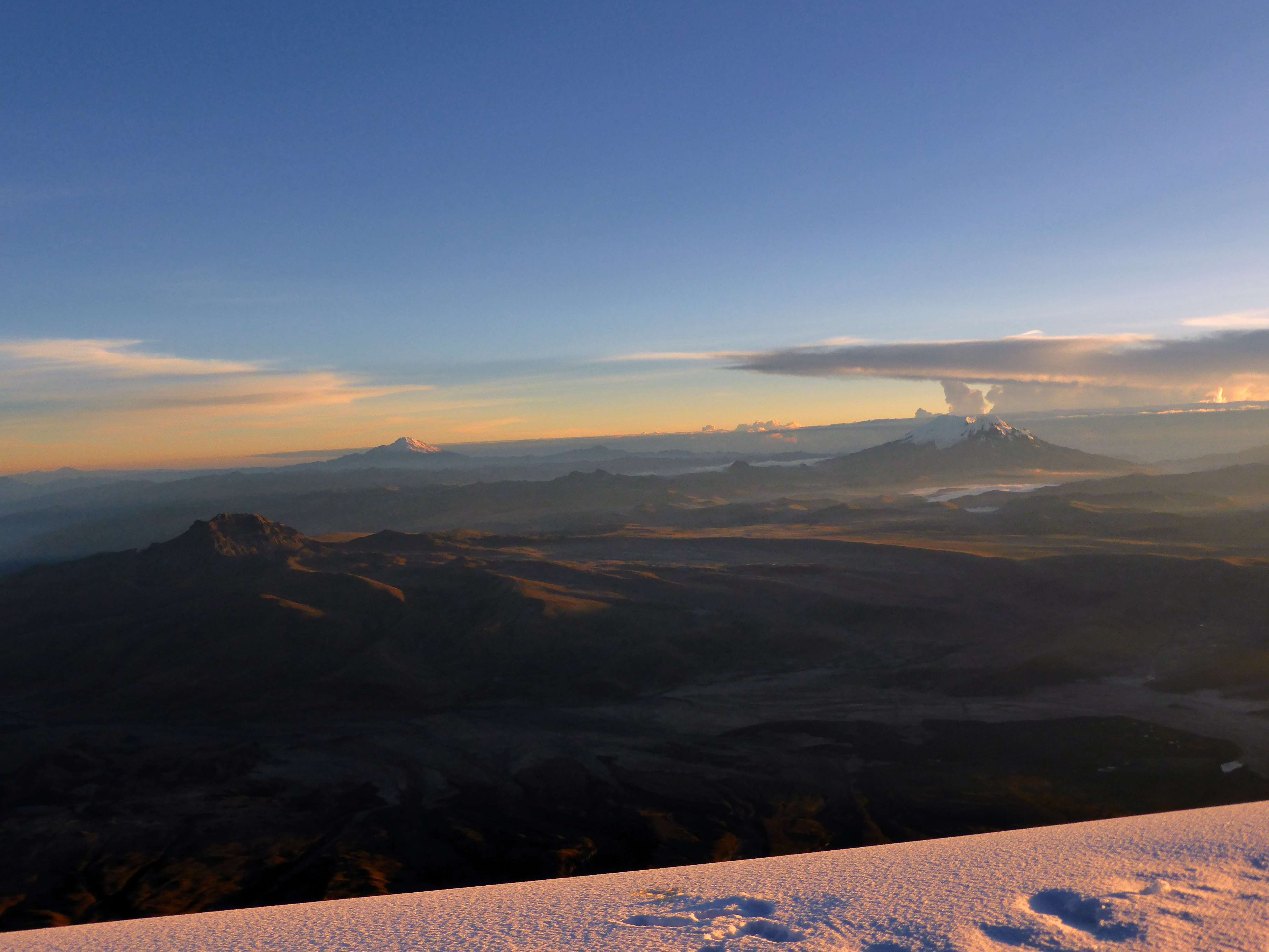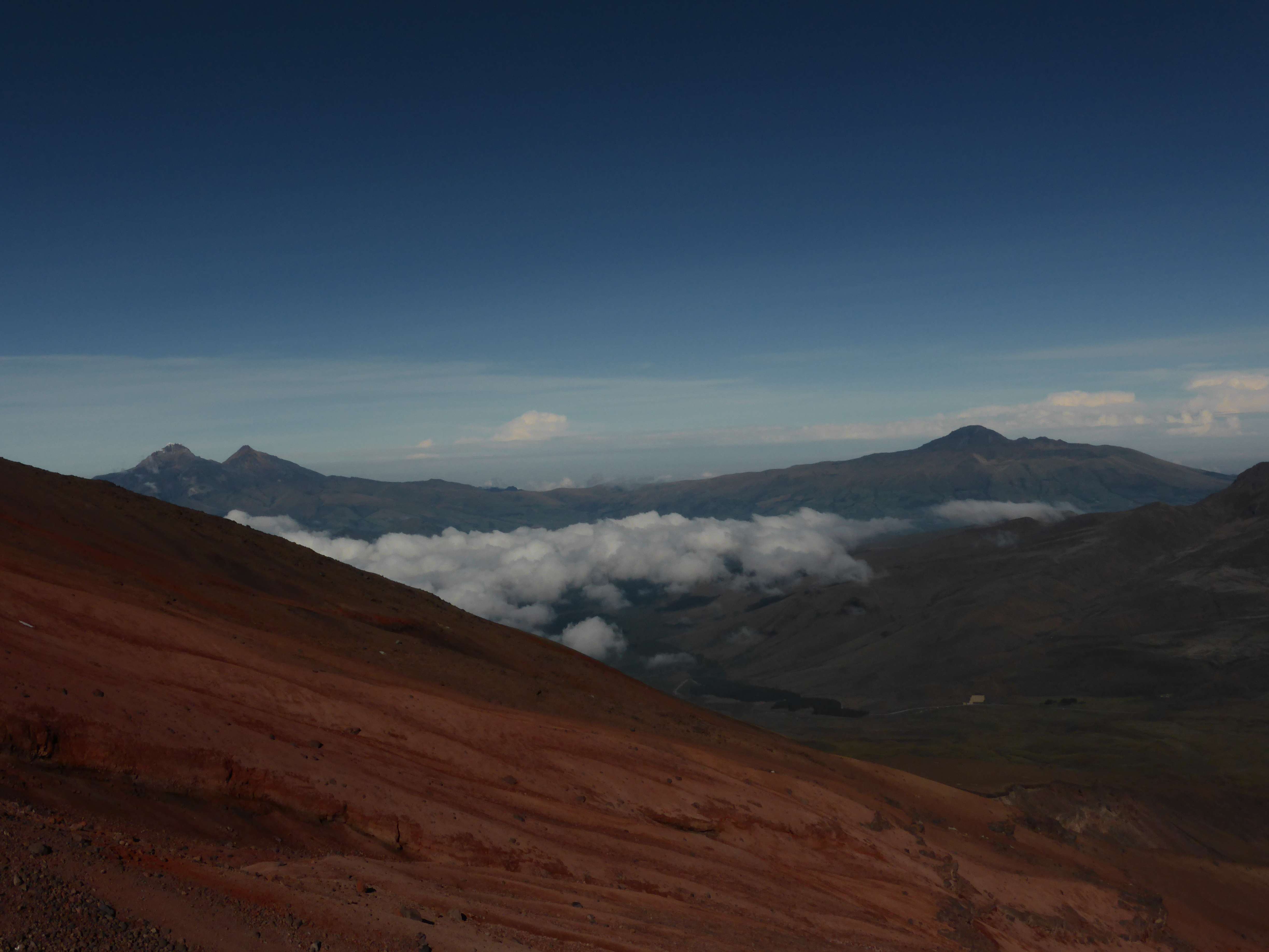 The view was absolutely perfect, with incredible visibility and almost no cloud cover. All of Ecuador’s major peaks could be seen, from Illiniza Norte and Illiniza Sur nearby to Chimborazo in the far distance. Cayambe and Antisana were free of clouds, and shone in the sunlight.