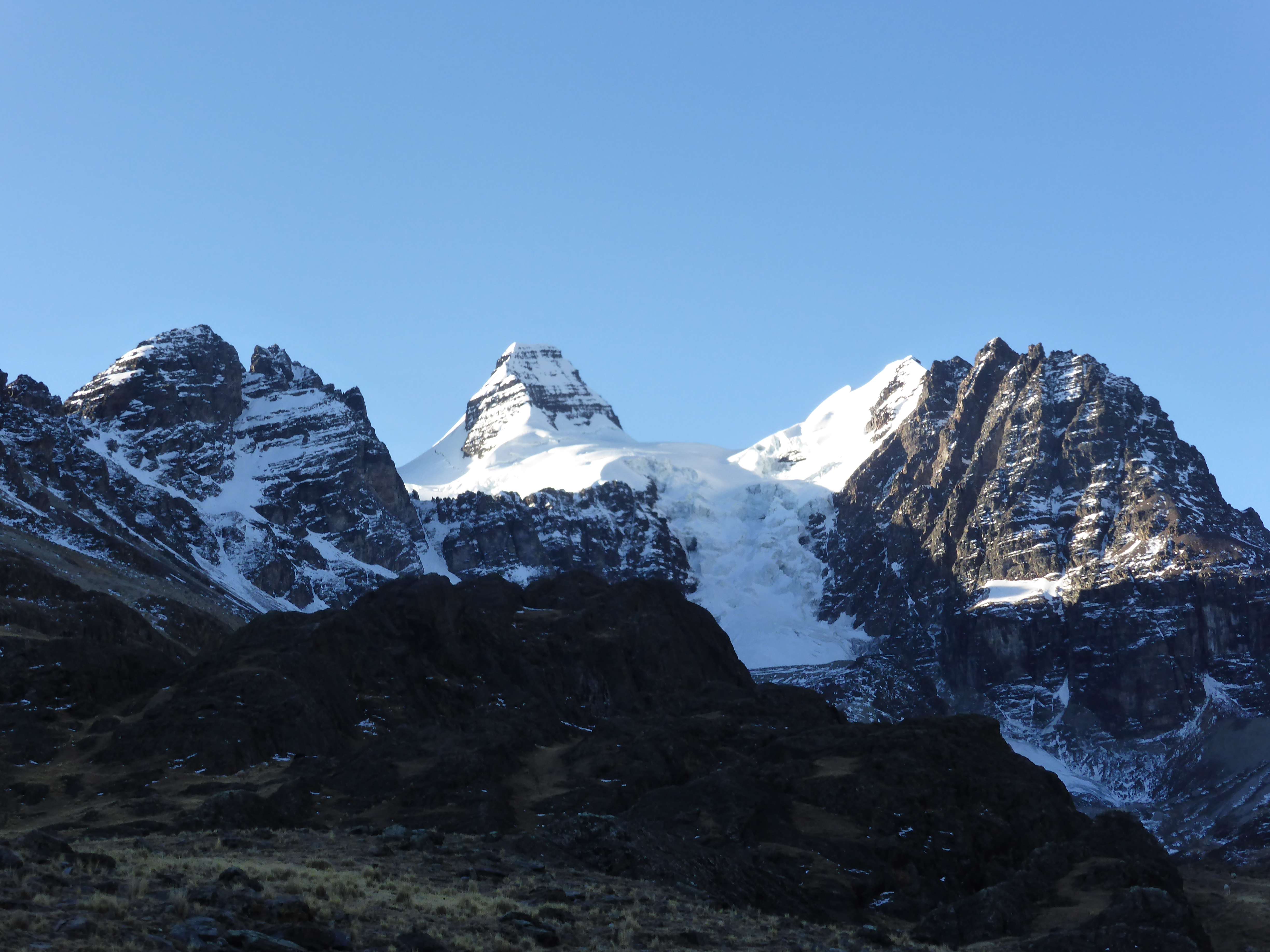 Cabeza de Condor, the highest peak of the Condoriri group, from basecamp.