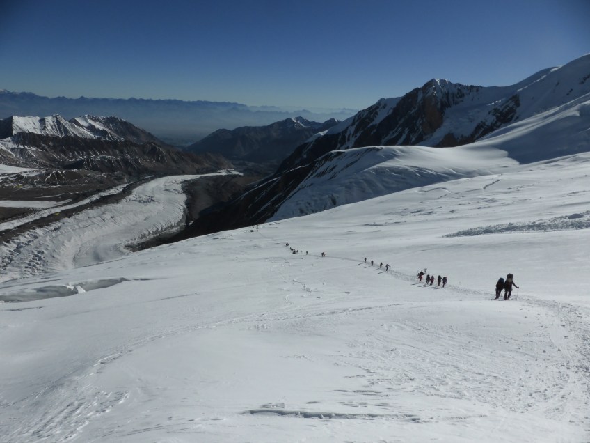 P1040200 Published 2017/05/12 at 4896 × 3672 in Pik Lenin – July 2016 Climbers ascending Lenin, first carry to Camp 2.