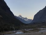 Due to our strong acclimation, we decided on an aggressive strategy for our summit attempt.  We would attempt the summit from Moraine Camp, rather than making the long carry over the Quitaraju-Alpamayo Col to the Col Camp/High Camp.  While we knew that this would add some 3-4 hours to the summit bid, we also knew that it would save a lot of energy, avoiding a gear carry over the steep and technical Col.  From Basecamp we no longer enjoyed donkey support, and so we left early after breakfast with heavy bags full of equipment.  The hike to Moraine Camp follows a trail of switchbacks up through brush and onto bouldery moraine, with clear views of surrounding mountains.  The moraine itself has several flat spots for tents – we chose to camp as close as possible to a small stream.