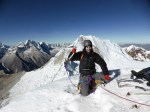 We were extraordinarily lucky to have direct access to Alpamayo’s true summit – something of a rarity.  The true summit is often inaccessible, or very dangerous, guarded by a traverse across the unstable and extremely exposed summit ridge, but this season the French Direct route terminated directly below the highest point on the ridge.  We spent roughly an hour on top taking photos of the gorgeous views and enjoying the sense of success.  Rappelling the face involved eight raps off of good v-thread anchors, and after a break to shed layers and hydrate at the Col our descent to Moraine Camp took another three raps.