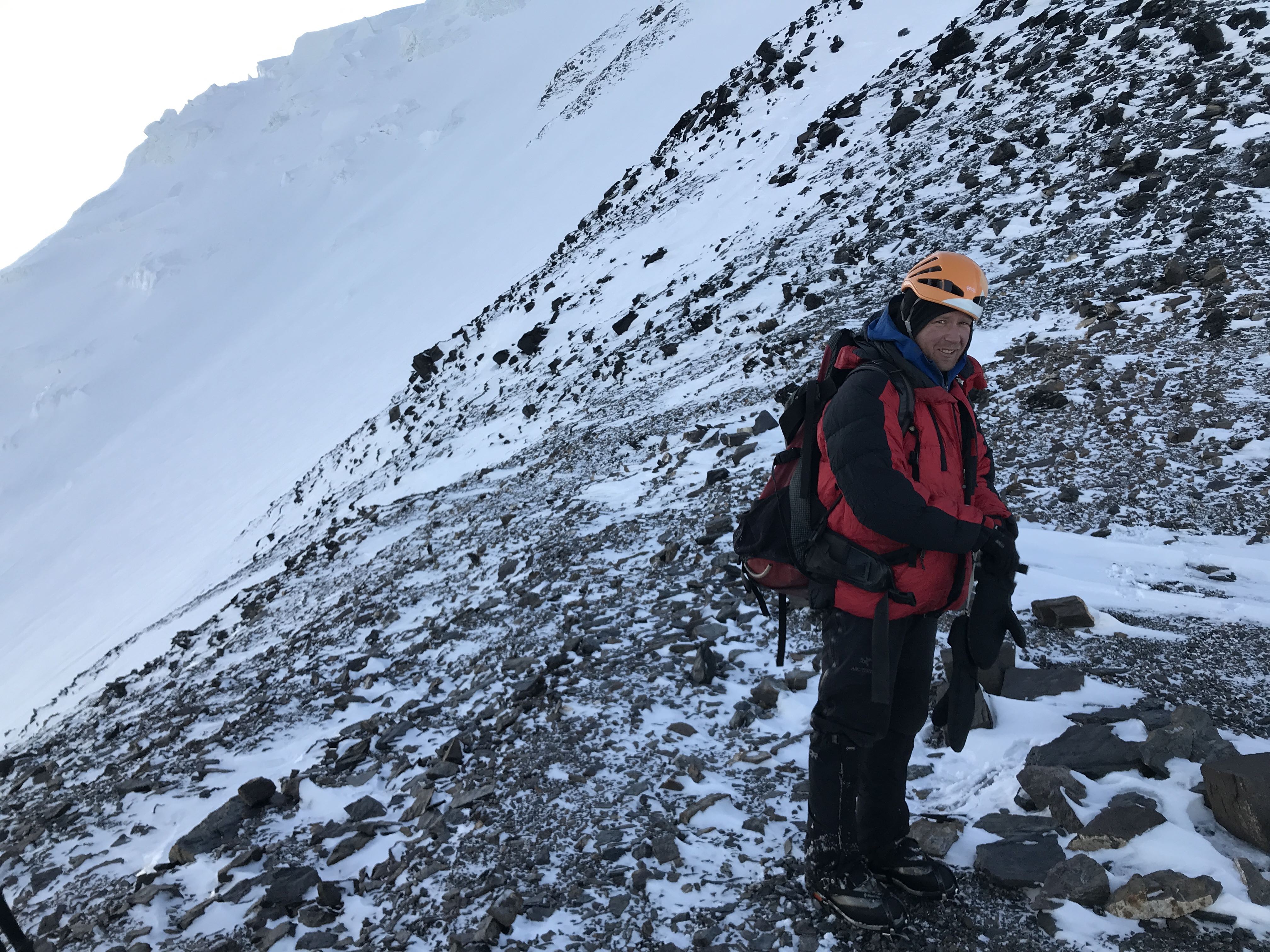 IMG_7134 Published 2019/08/25 at 4032 × 3024 in Noshaq – July 2019 Eric, preparing to lead the first rock pitch.