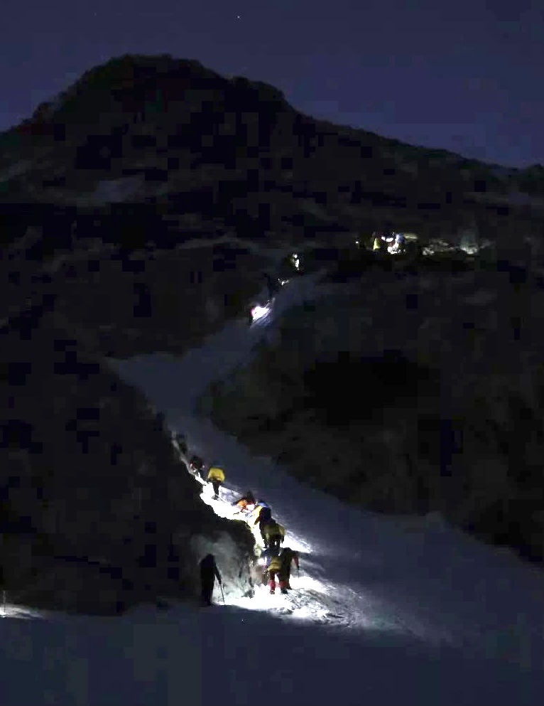 The Daxue Shan range is also known as the Gongga range, after its major highpoint of Gongga Shan / Minya Konka. Gonga is an incredibly impressive and topographically prominent 7556m peak with only a handful of prior summits, and a shockingly bad track record of fatal climbing accidents. Tianhaizi, while nowhere near Gonga’s difficulty nor notoriety, has a reputation for being a challenging mountain to attempt without a large team and fixed ropes.