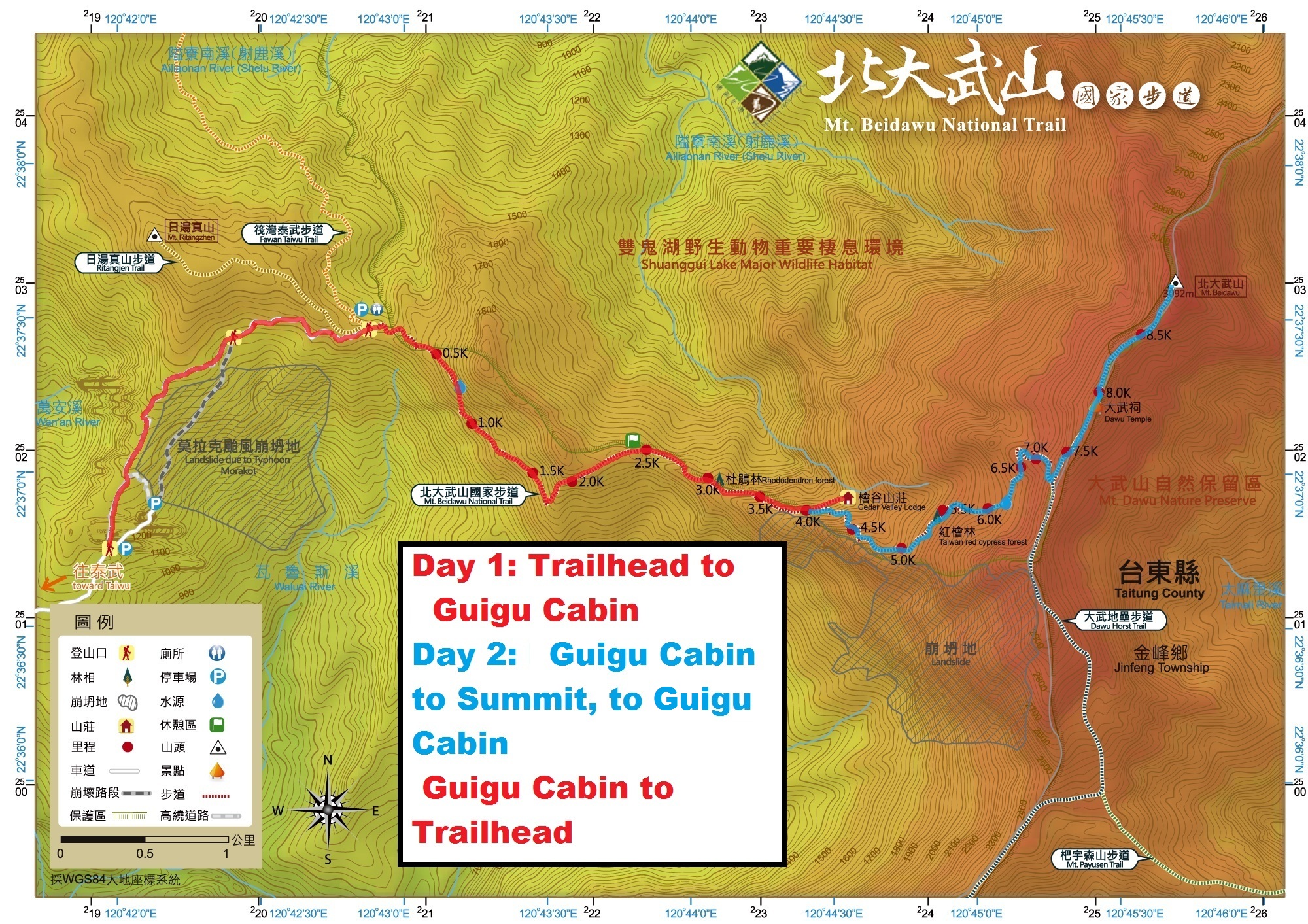 Hiking Zhongyangjian Shan requires national park entry permits from Taroko National Park, as well as Police issued mountain entry permits. The park entry permit requires two Taiwanese group members; one as the “group leader”, and one as the “emergency contact”. I did this hike alone, but still needed to have a Taiwanese friend on my permit. The Taroko National Park permit website (In Chinese) is located here: