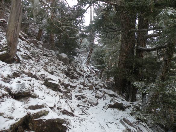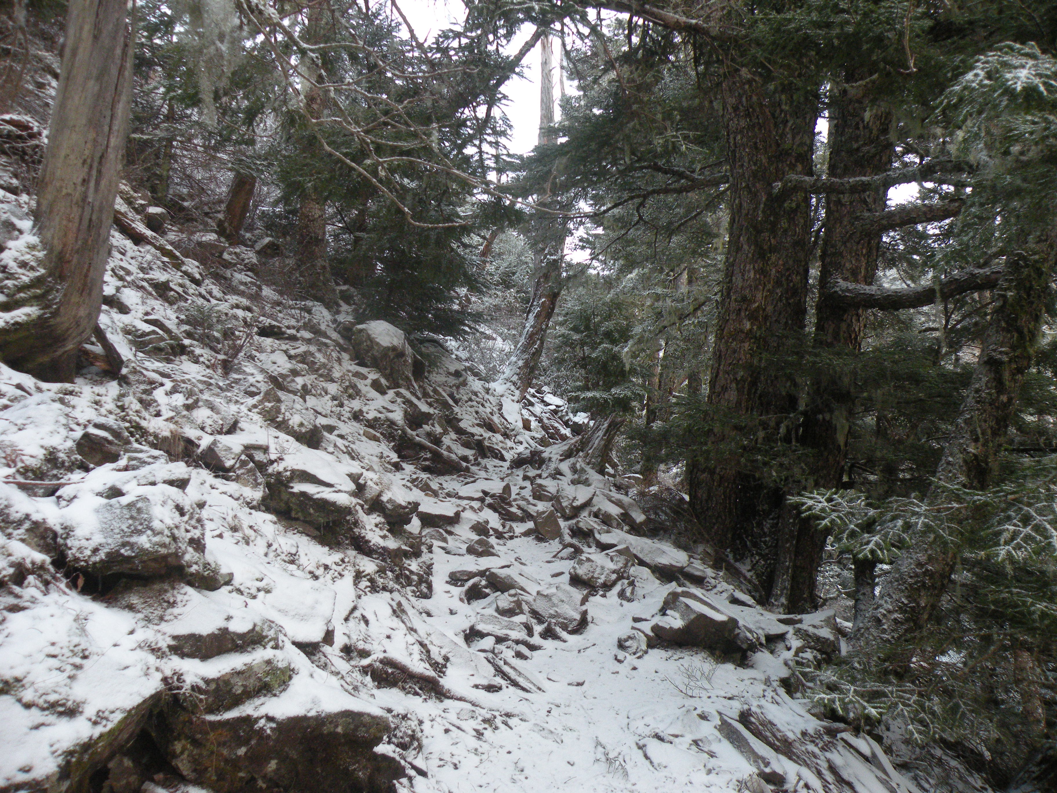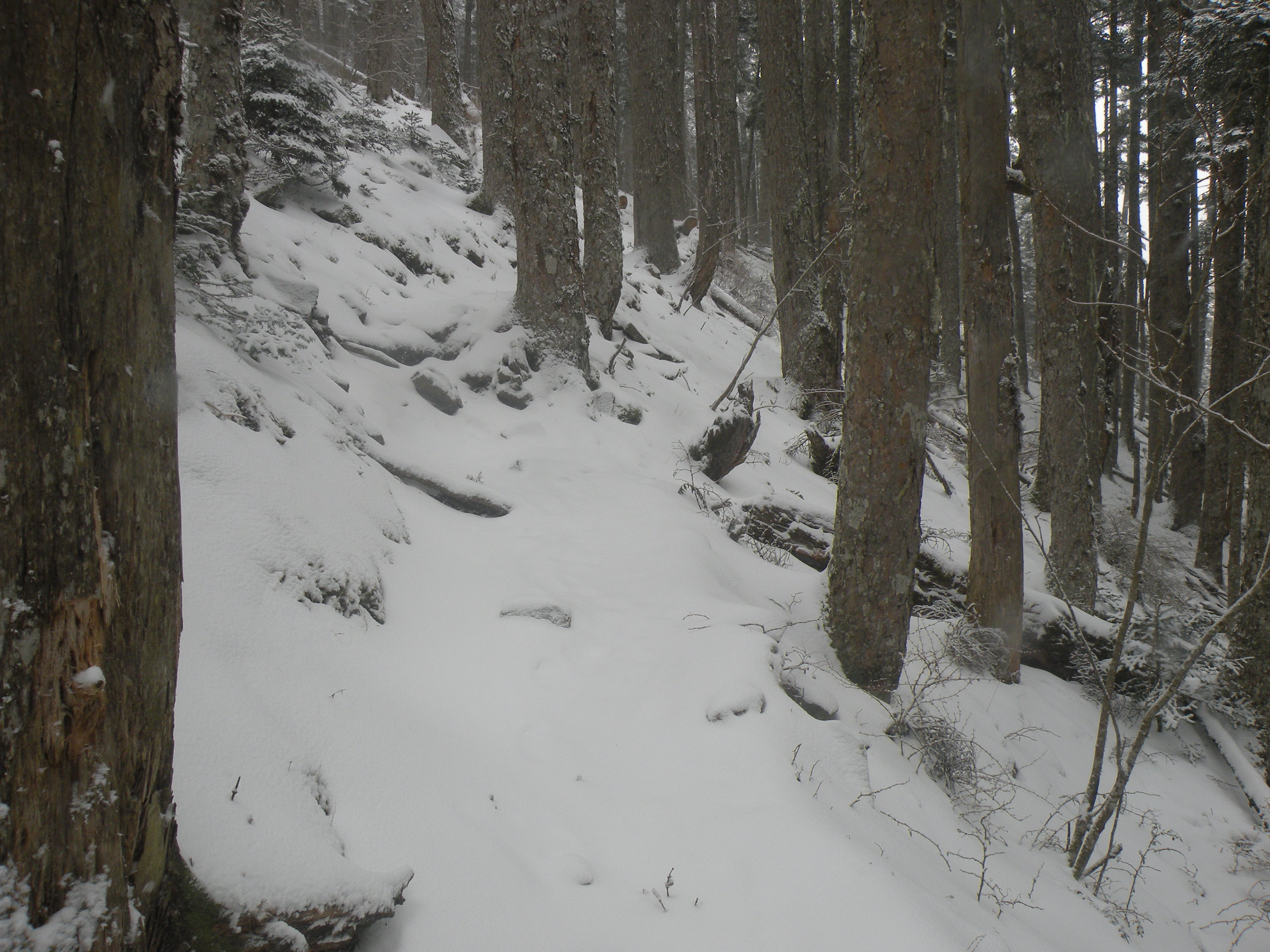 Some of the landslides looked like they had been crossed before, but none of them were marked with tags, and no trails were broken.