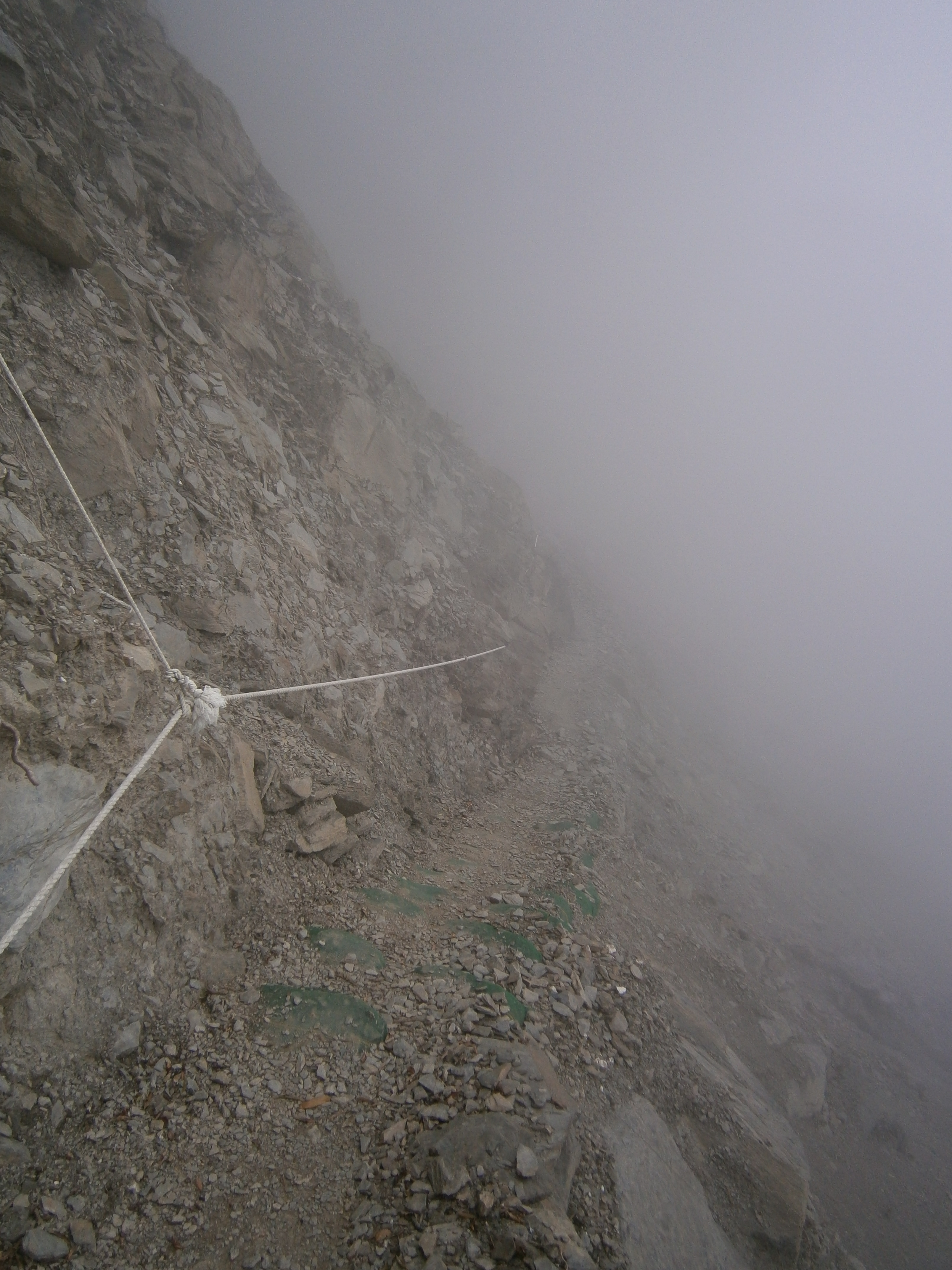 A usage path leads upwards to the summit. One final, steep section at the top has mounted ropes.