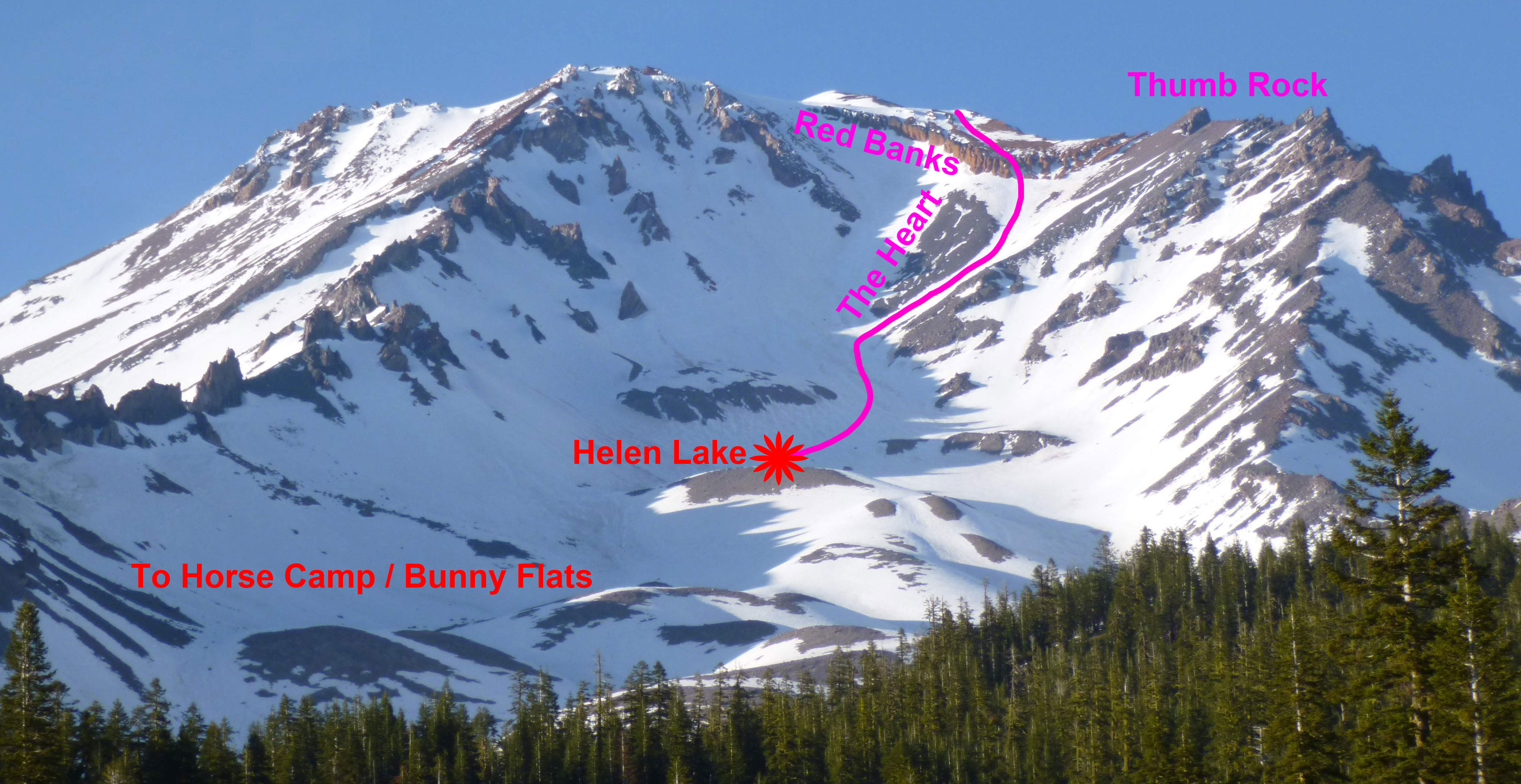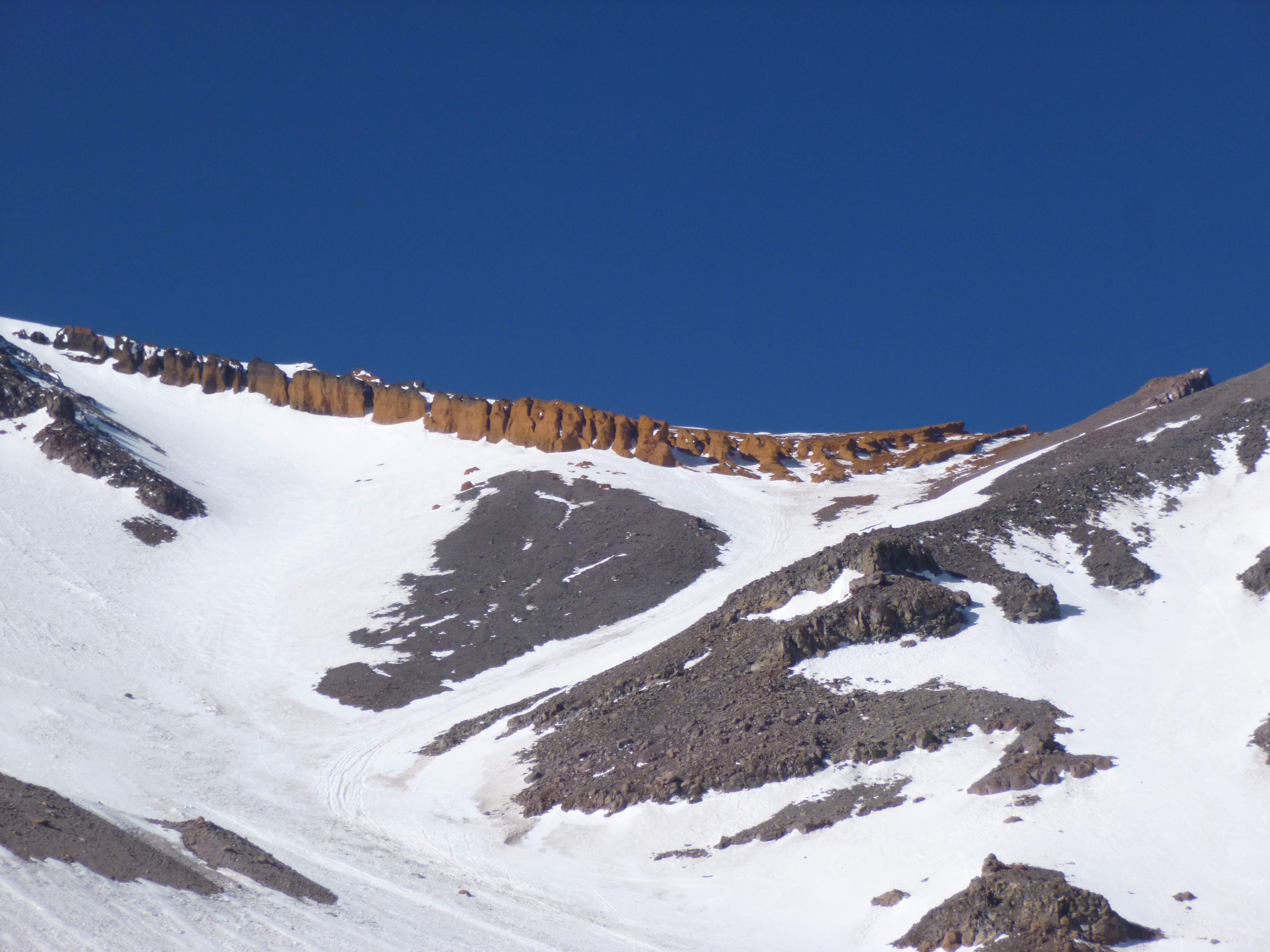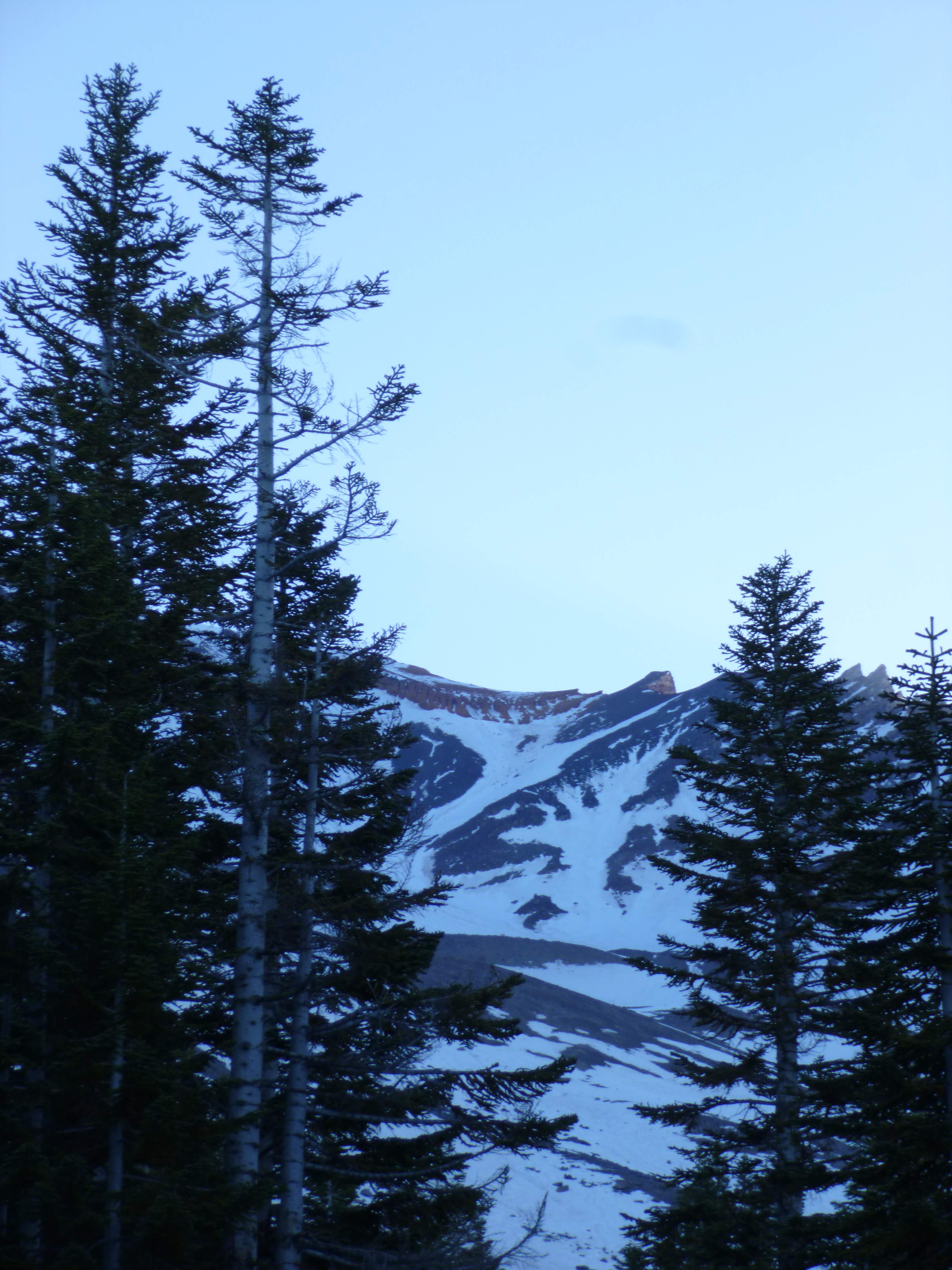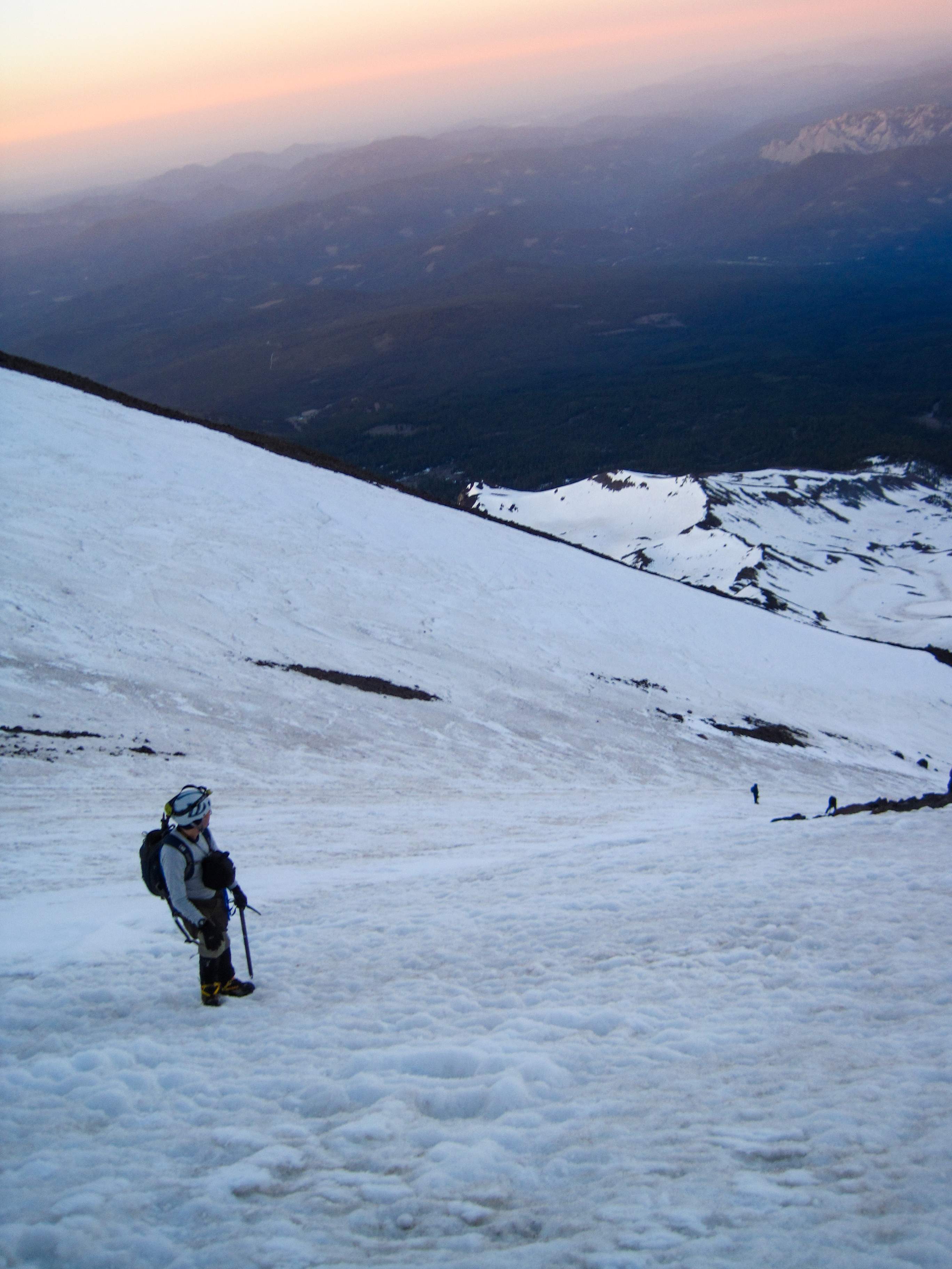 Day 4: Up early, we were greeted by a clear sky and gorgeous alpenglow on the upper mountain.