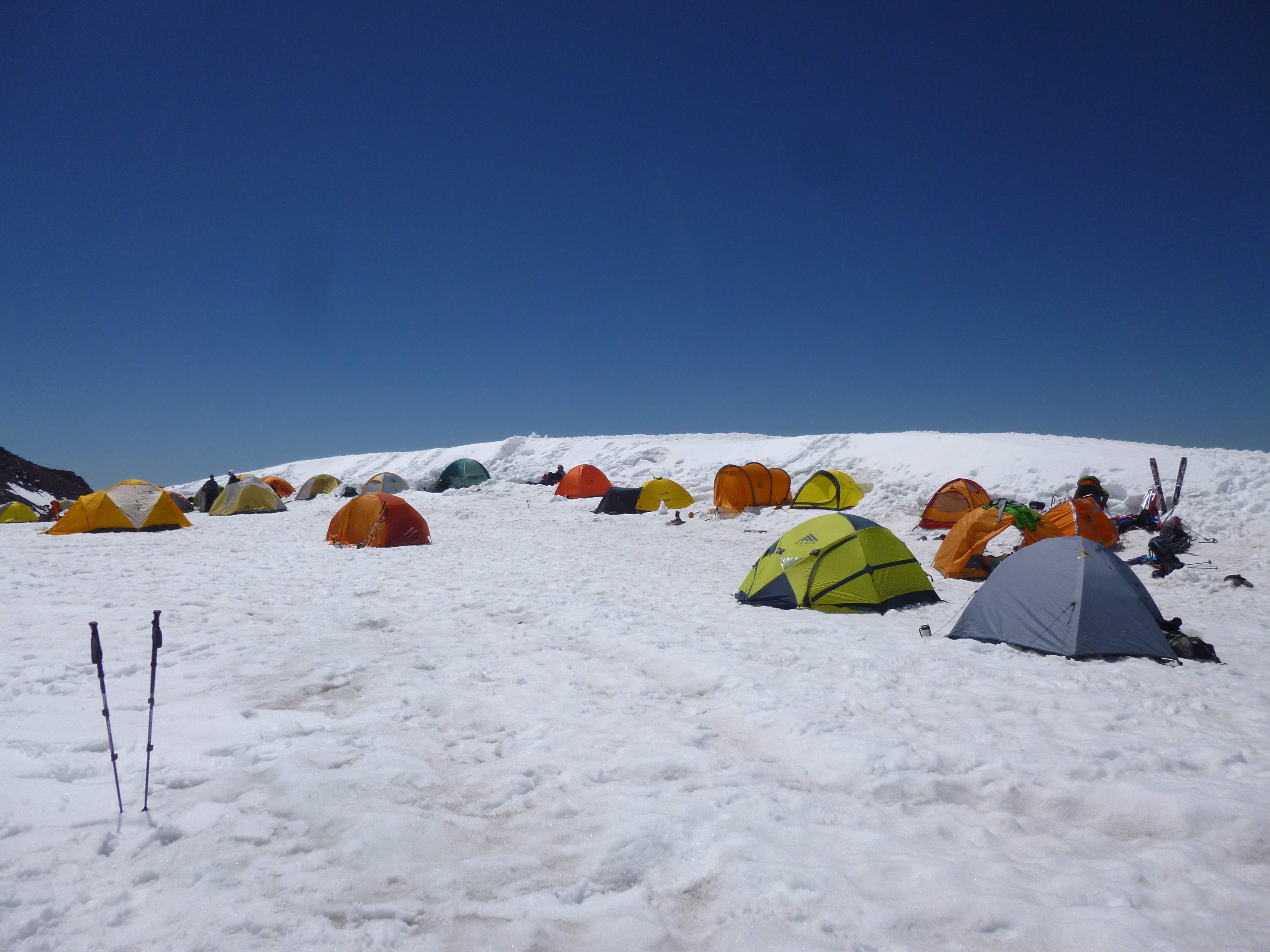 At around 4:30 p.m. – a full 12 hours since leaving – we arrived back at Camp Schurman. Several other teams had arrived while we were climbing, yet others had left. In high spirits, I lounged around camp hydrating and eating snacks.
