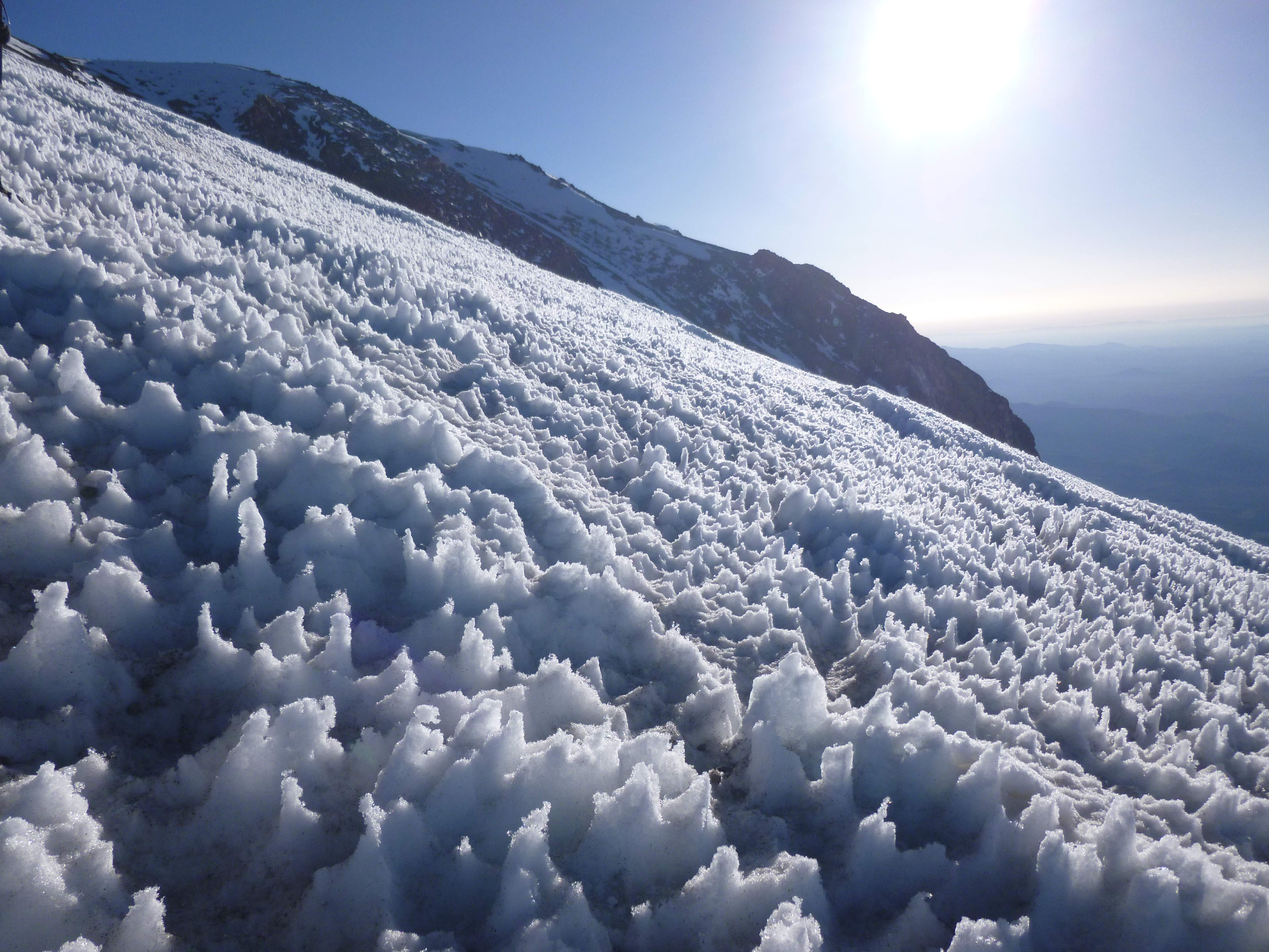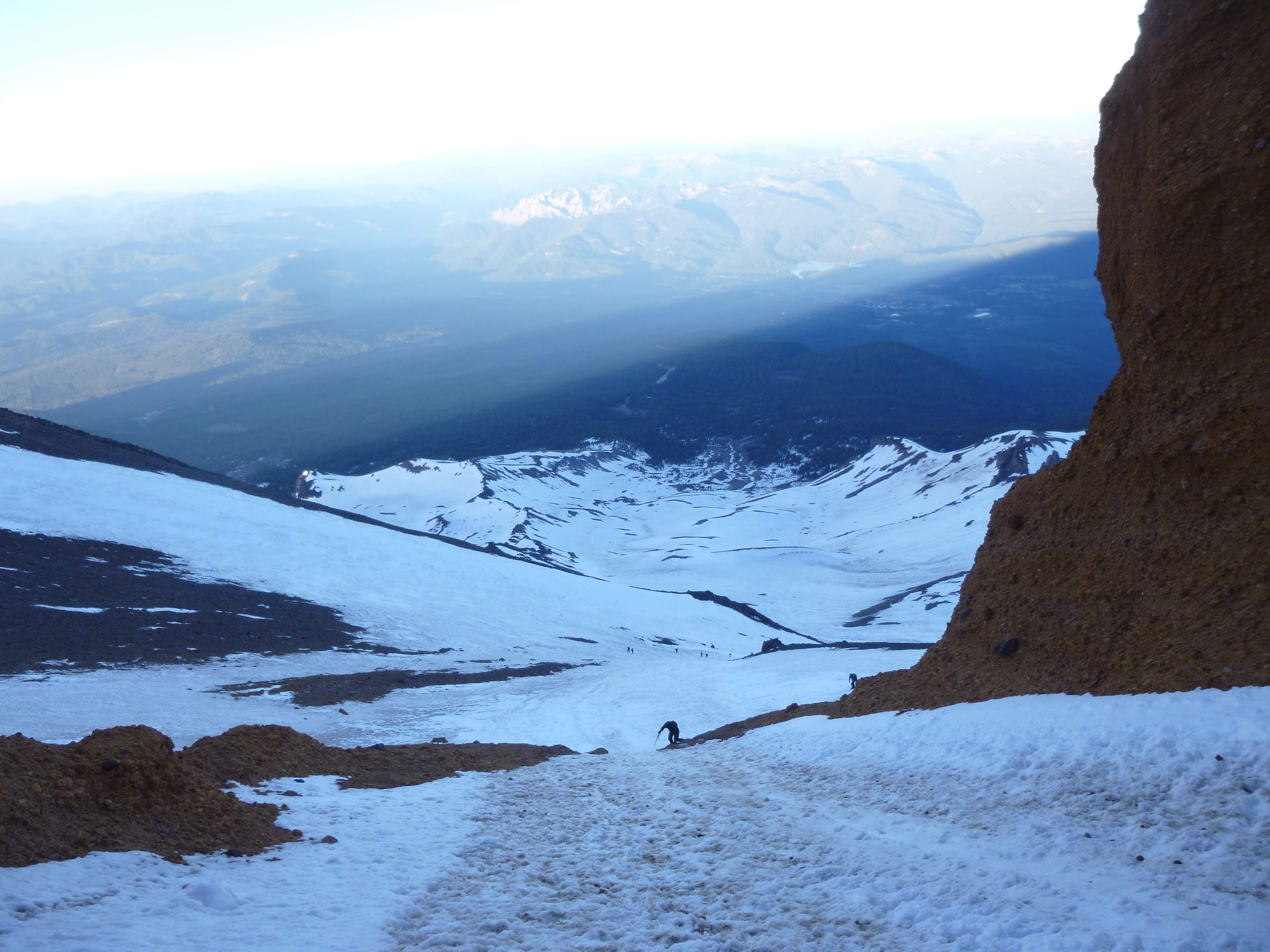 Looking across the Emmons in a brief patch of blue sky. Visibility was very poor for most of our descent.