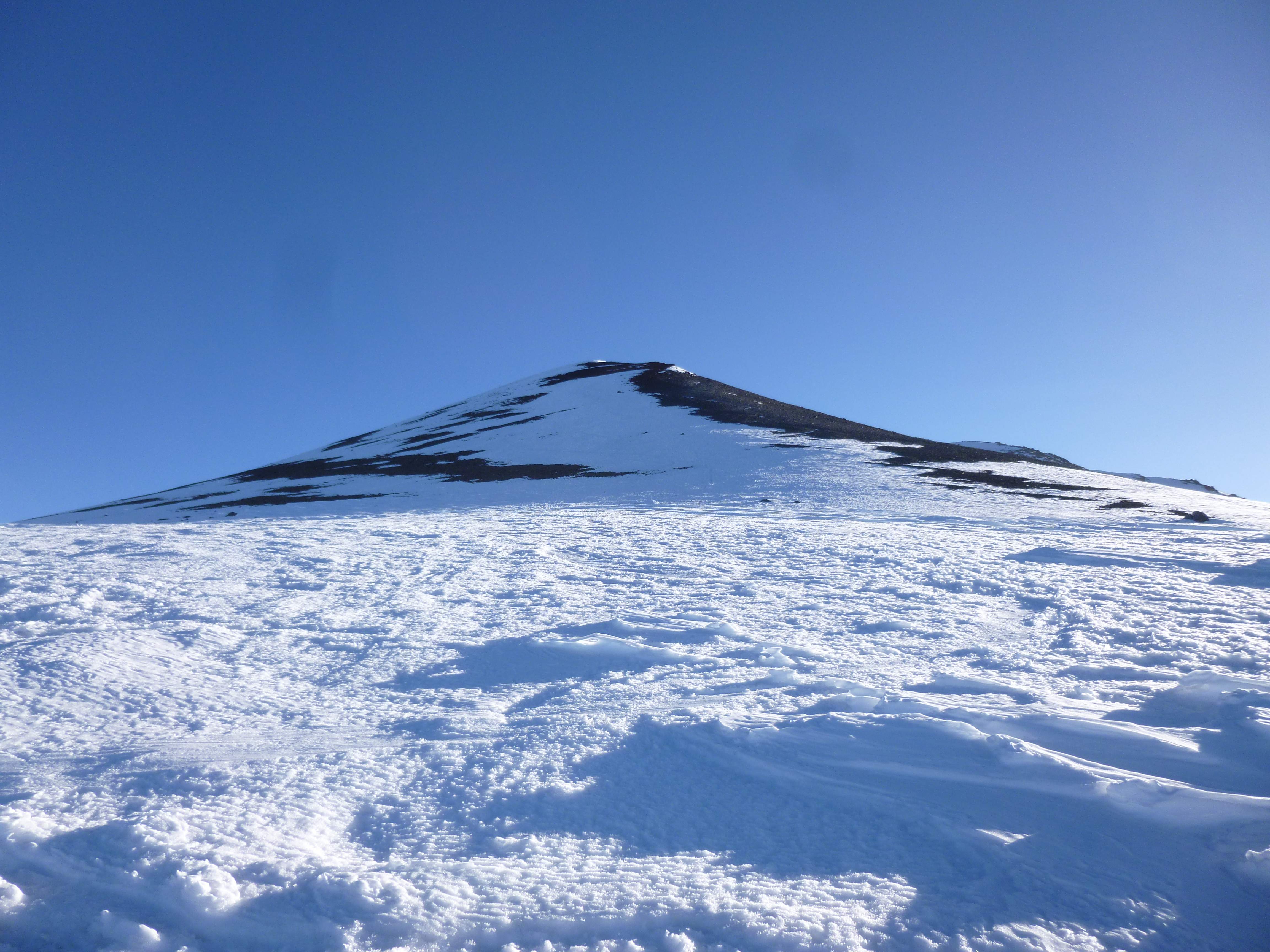 The crater rim came into view, devoid of snow.