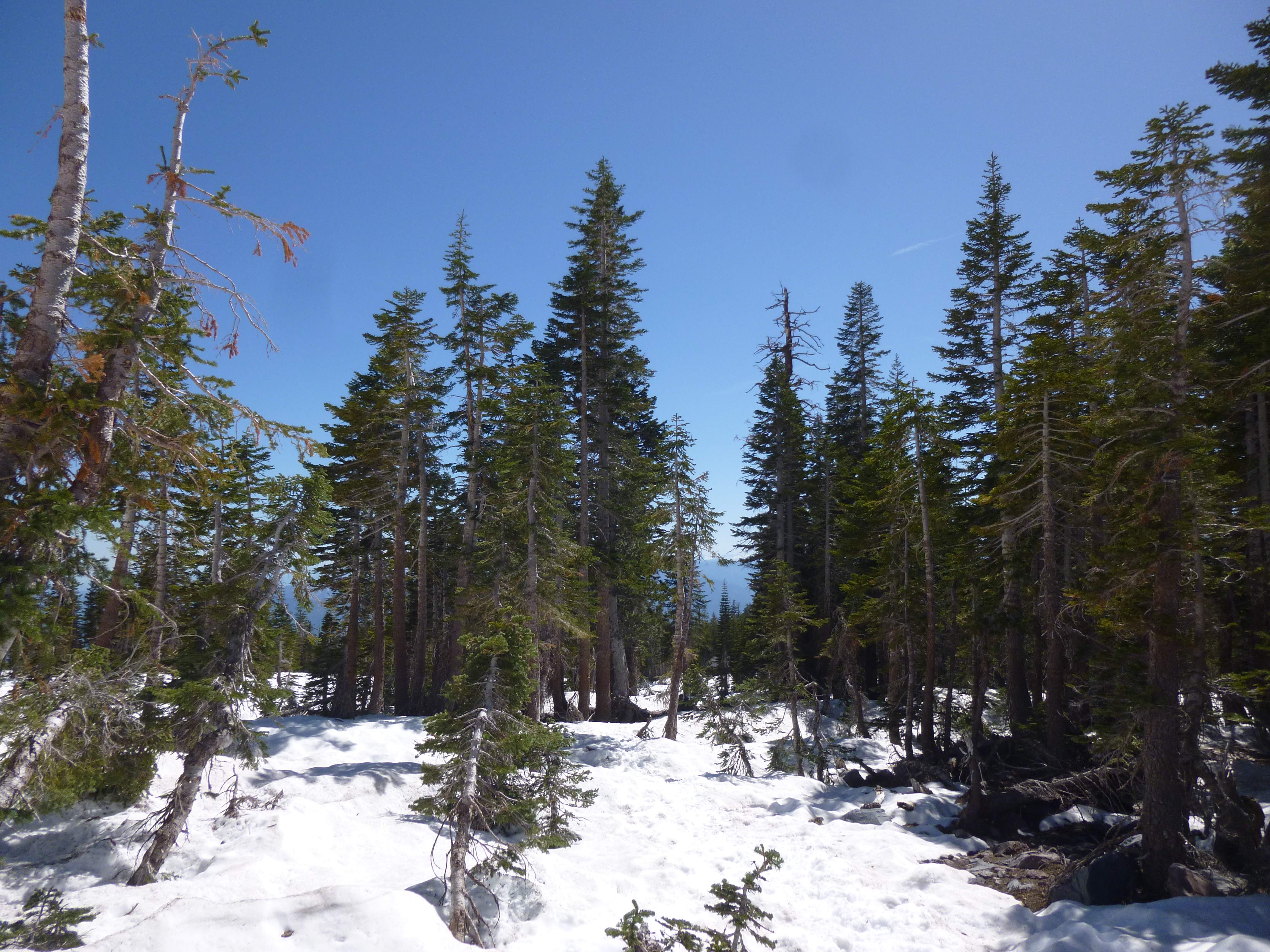 Higher up, the maintained trail disappeared under increasingly heavy snow cover. We continued following a route through the trees marked off by national park wands.