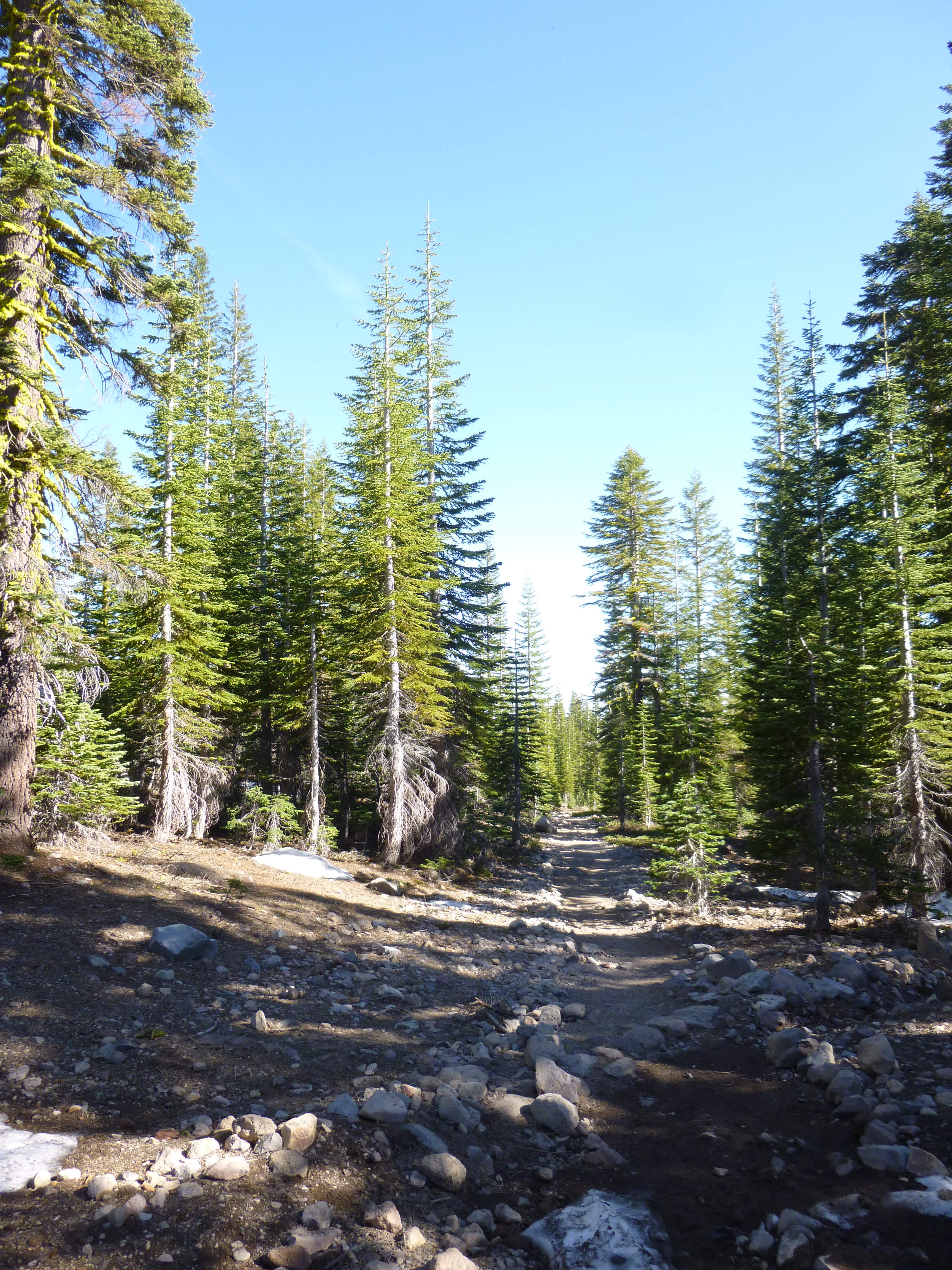 Leaving the Inter Glacier for the Glacier Basin trail. Old avalanche debris remained from the winter.