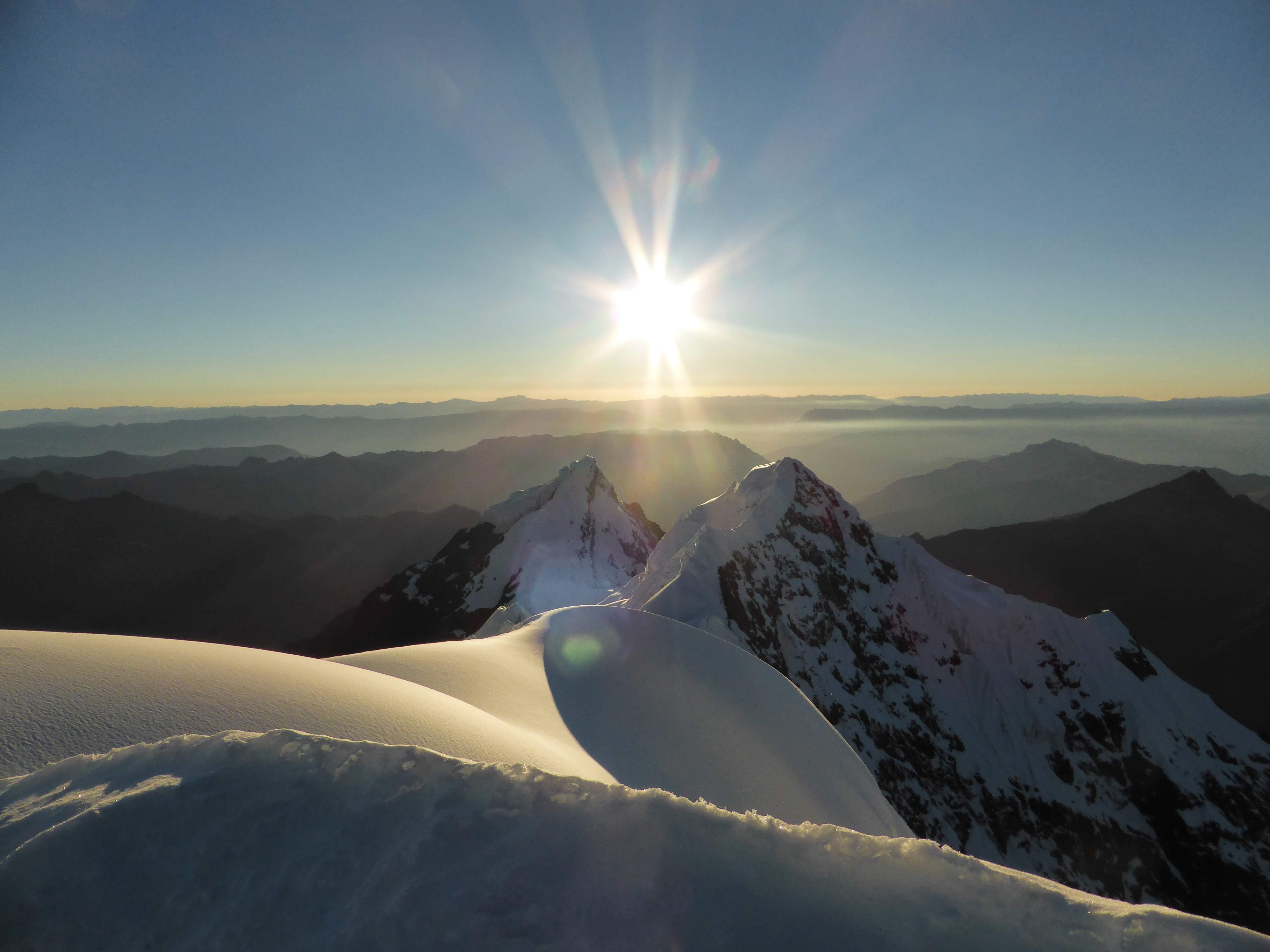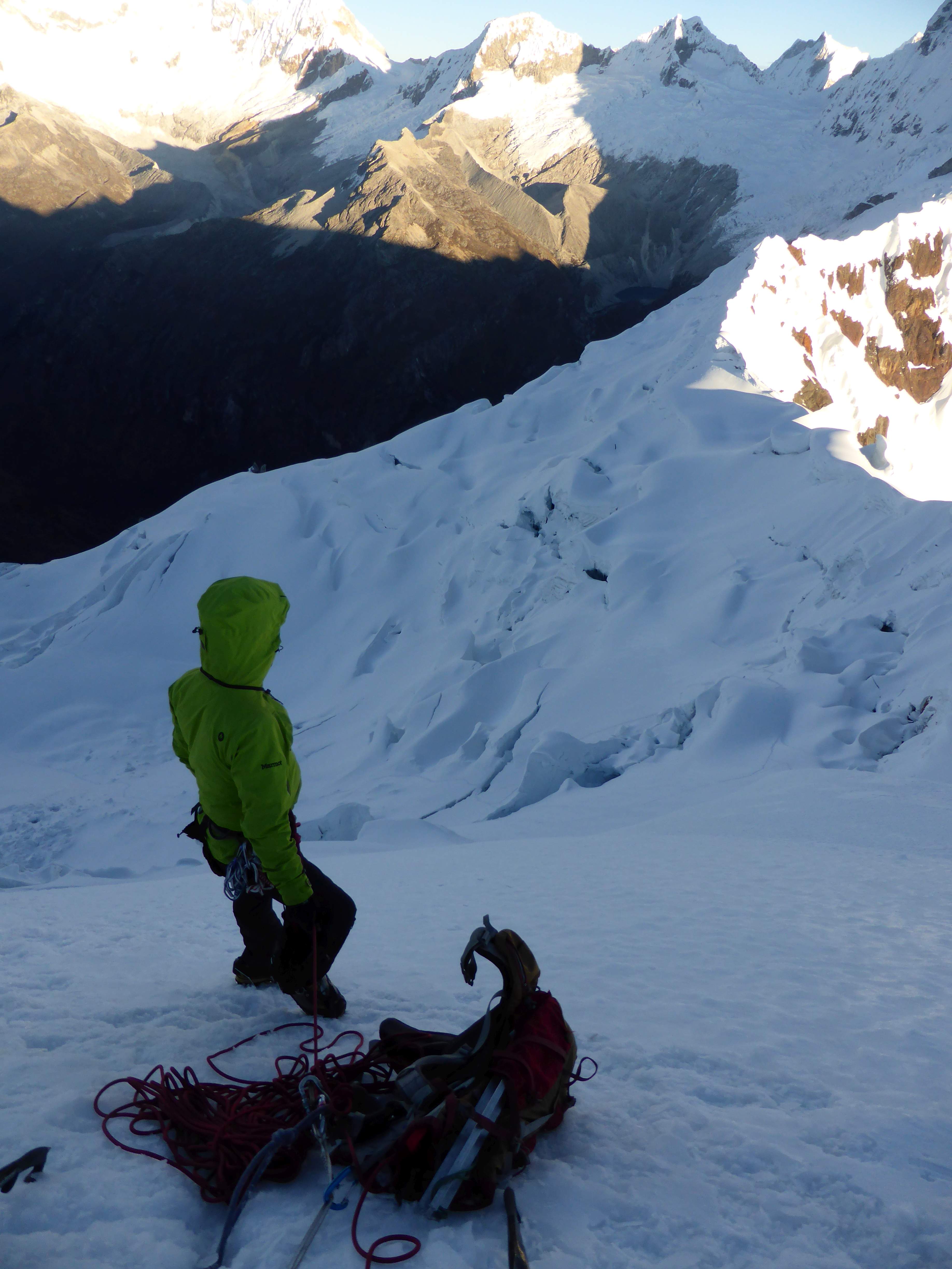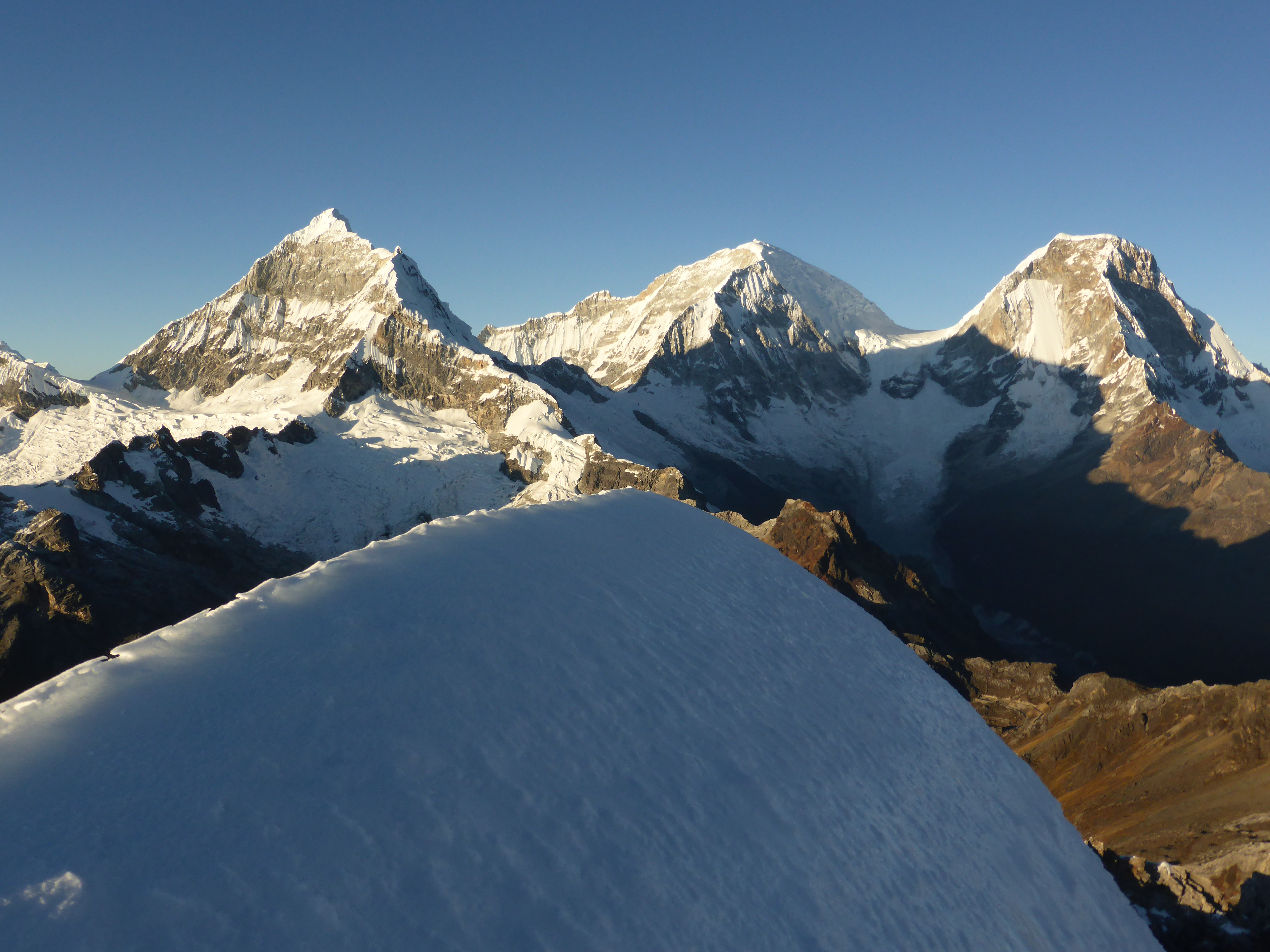 Ahead of us the sun was rising over Yanapaccha’s secondary peaks. The morning light warmed us up, and put us into good spirits for the descent.